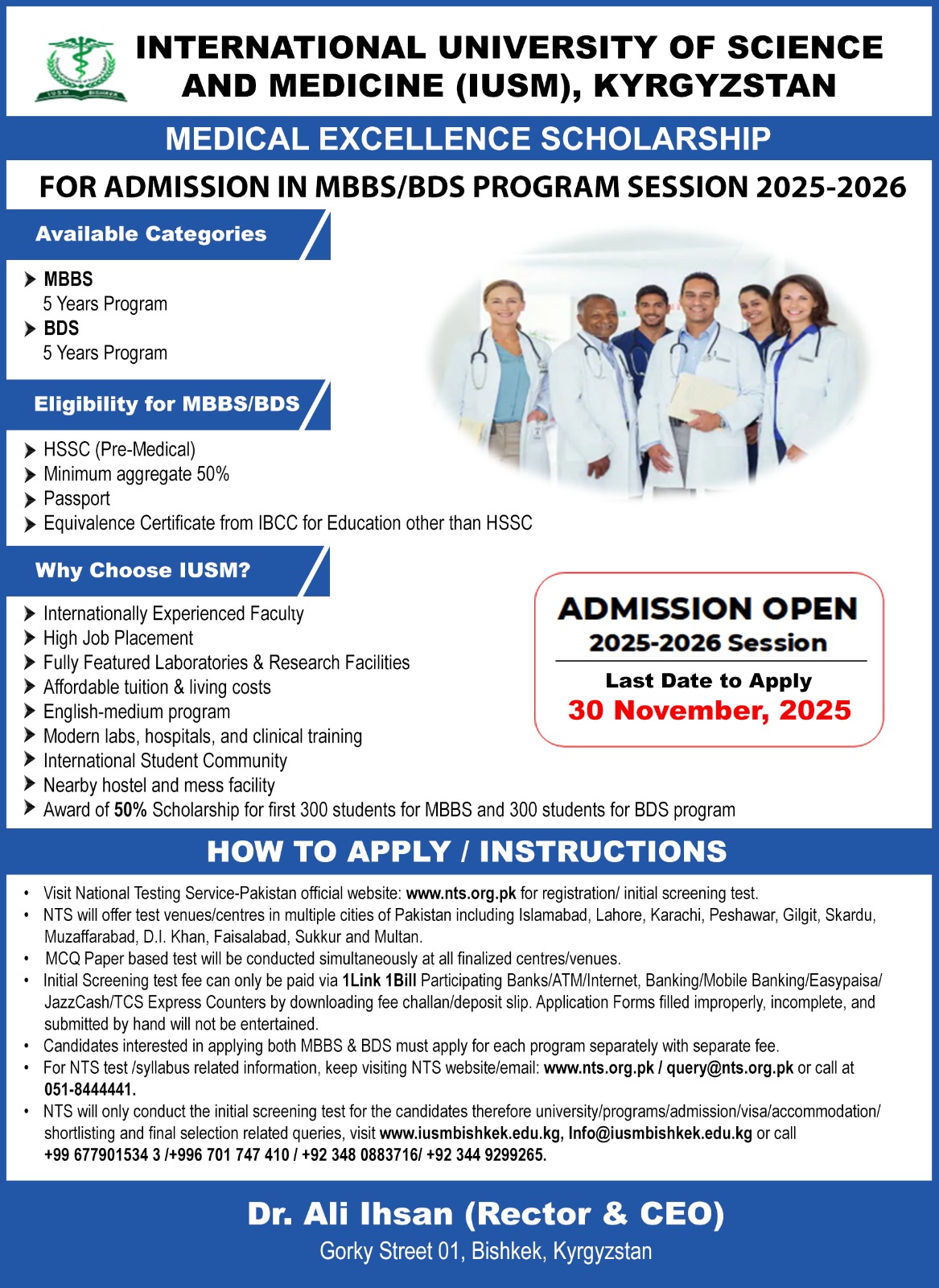 International University of Science and Medicine-IUSM, Kyrgyzstan (MBBS/BDS Admission Test Session 2025-2026)
