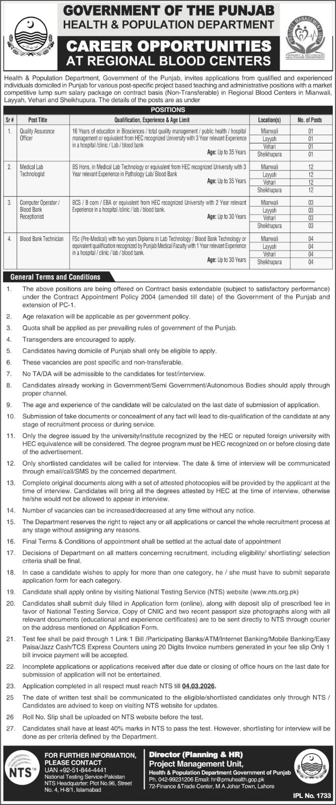 HEALTH & POPULATION DEPARTMENT CAREER OPPORTUNITIES AT REGIONAL BLOOD CENTERS