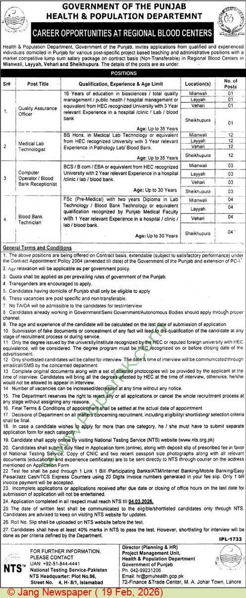 Code: 2602207 Govt of the Punjab Health & Population Department